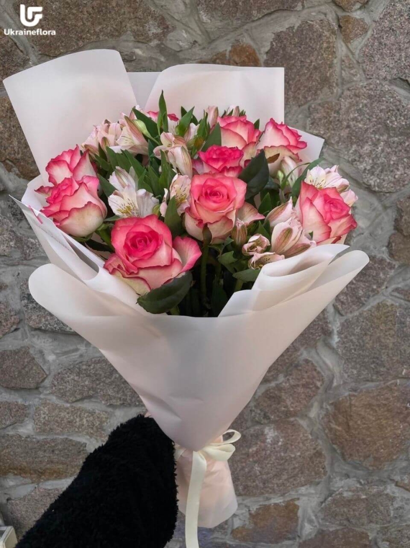 - What types of flowers and gifts can be ordered for delivery in Ukraine through Ukraineflora? Customers can order bouquets made of different flowers such as roses, lilies, tulips, alstroemerias, chrysanthemums, etc. Different types of gifts are also available for ordering and delivery in Ukraine, such as food baskets, cakes, chocolate candies in boxes, soft toys, gift cards, etc.