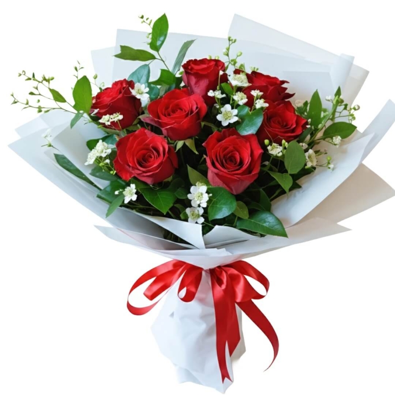 Подарите частичку своей любви с букетом из 7 красных роз – классическим символом страсти и искренних чувств. Опытные флористы тщательно создают композицию из семи свежих красных роз, каждая из которых олицетворяет любовь, уважение и восхищение.