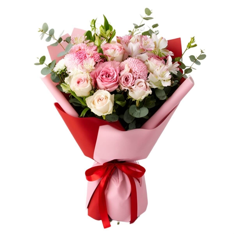 I liked how balanced this bouquet looked—white flowers gave it a fresh ‘clean’ feel, and the pink added warmth. Communication was quick and delivery was on schedule.