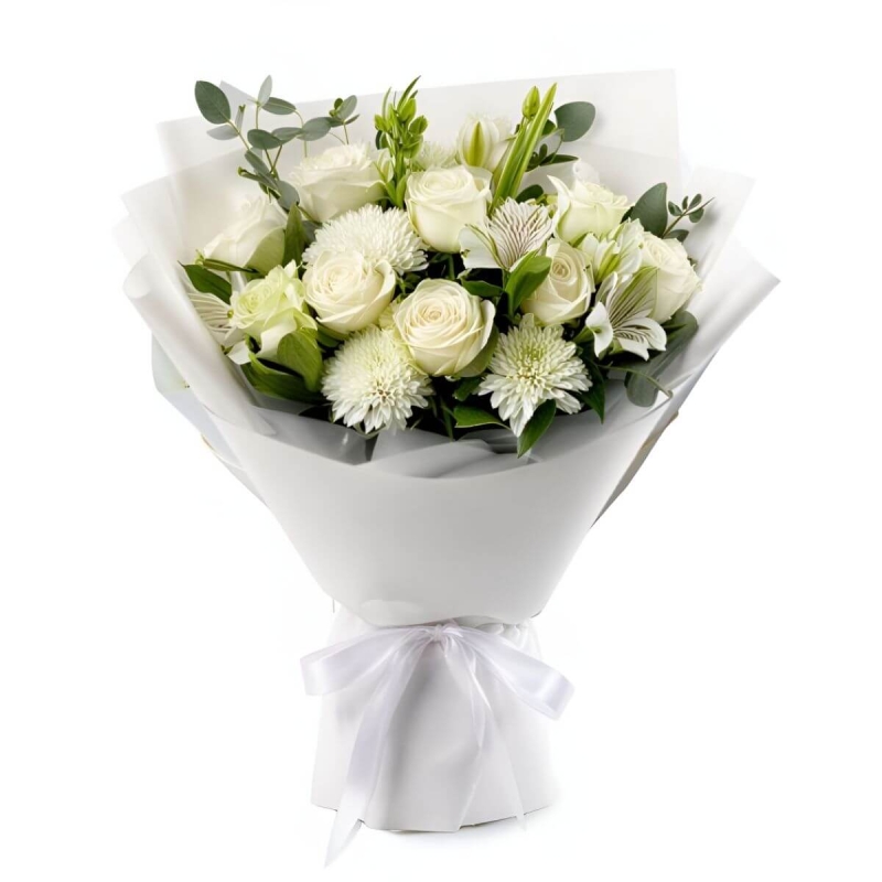 I picked white because it’s classic, and the bouquet came out exactly that—simple, fresh, and polished. No crushed petals, no messy wrap.